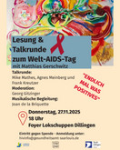 Das Gesundheitsamt Saarlouis lädt zusammen mit der Stadt Dillingen und One Smile anlässlich des Welt-Aids-Tages zu einer Lesung und Talkrunde ein